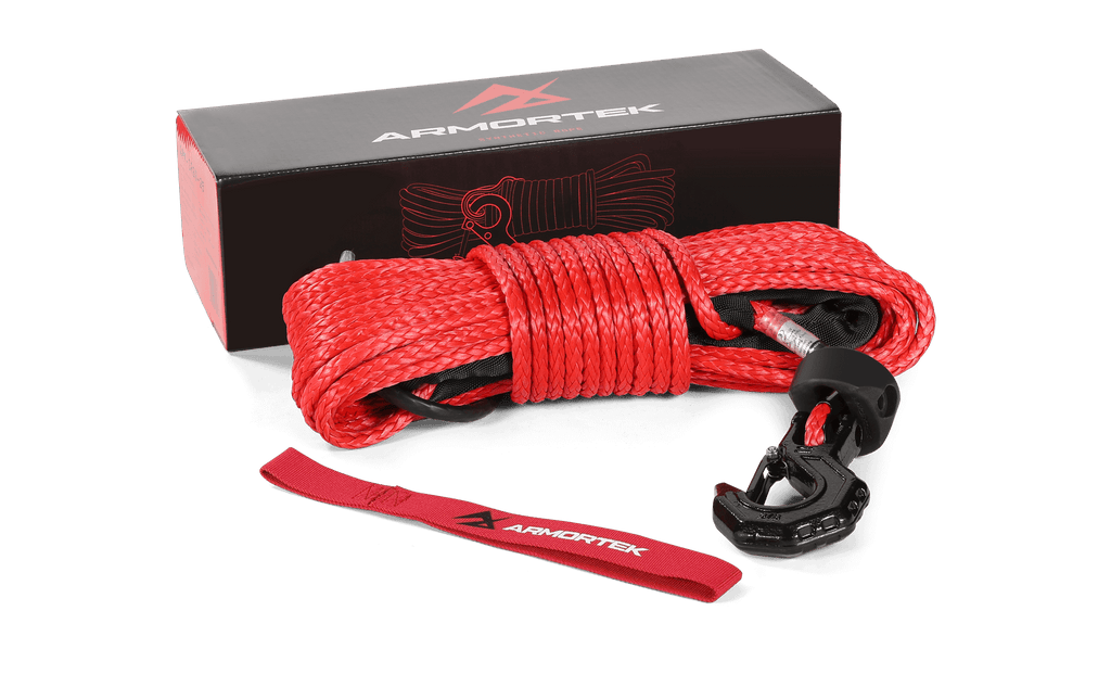 Armortek Synthetic Winch Rope is made with HMPE, a fiber stronger than hardened steel. It undergoes a unique pre-stretching process and is coated with special Armortek abrasion resistant coating for ultimate endurance.